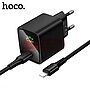 Incarcator retea telefon mobil Hoco cu cablu Lightning, cu display digital, model CS82A, putere 20W.